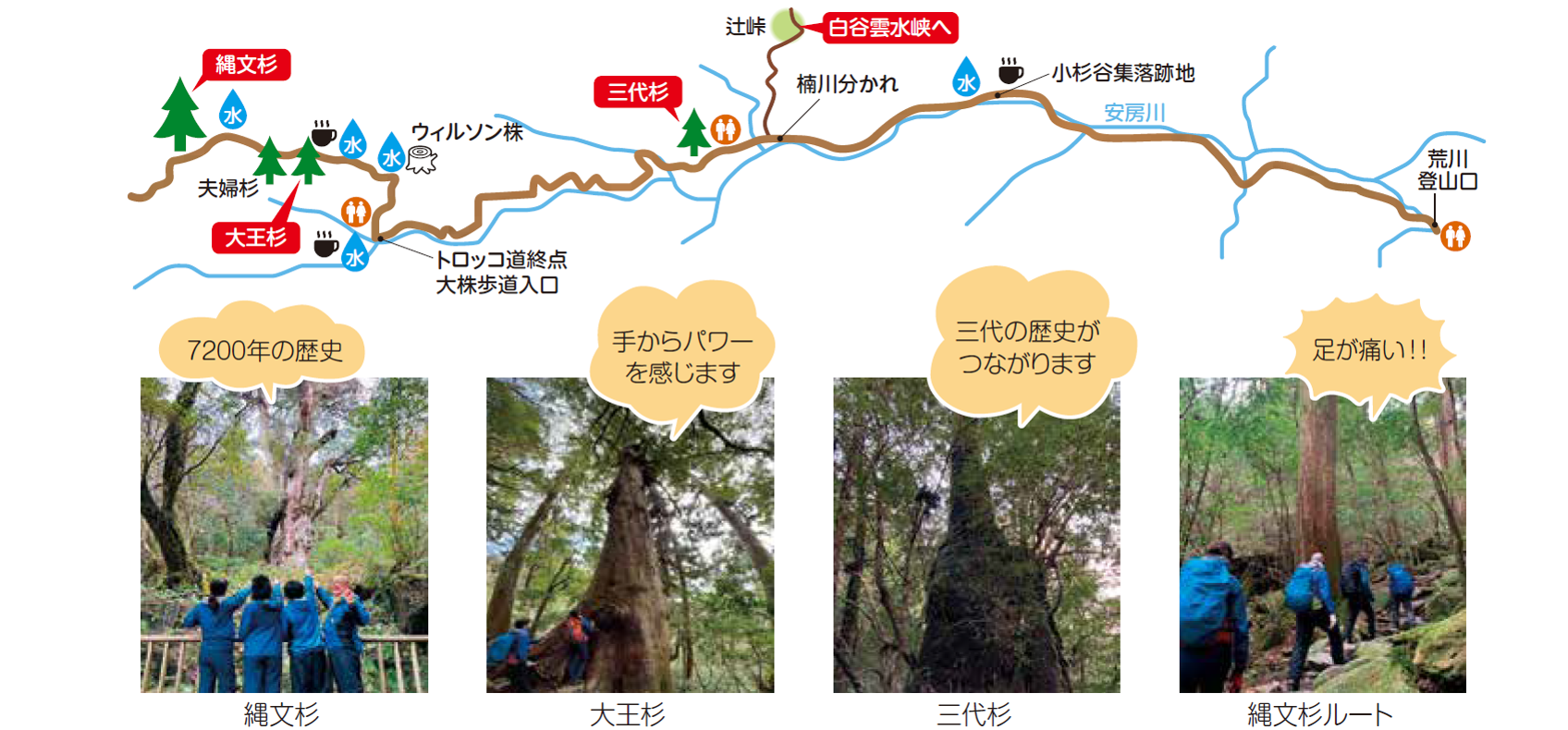 嶋の標高500m以上の山地に自生する樹齢1000年を超える杉を「屋久杉」と呼び、中でも「縄文杉」は推定7200歳!